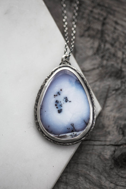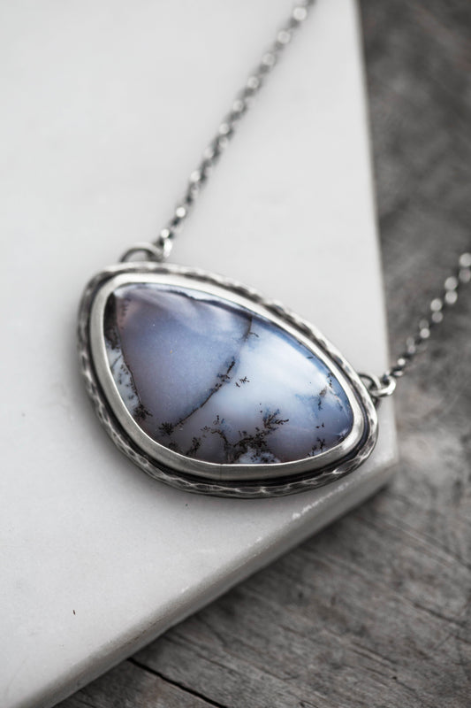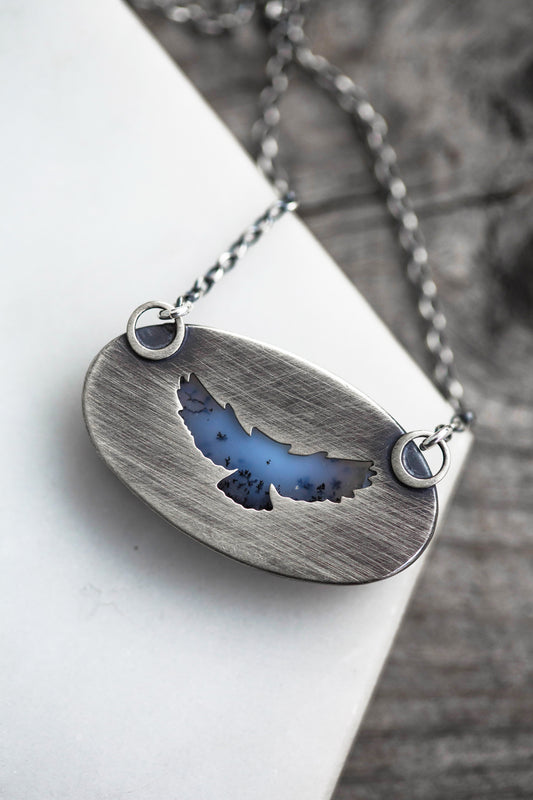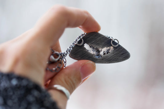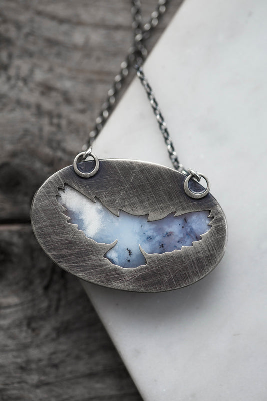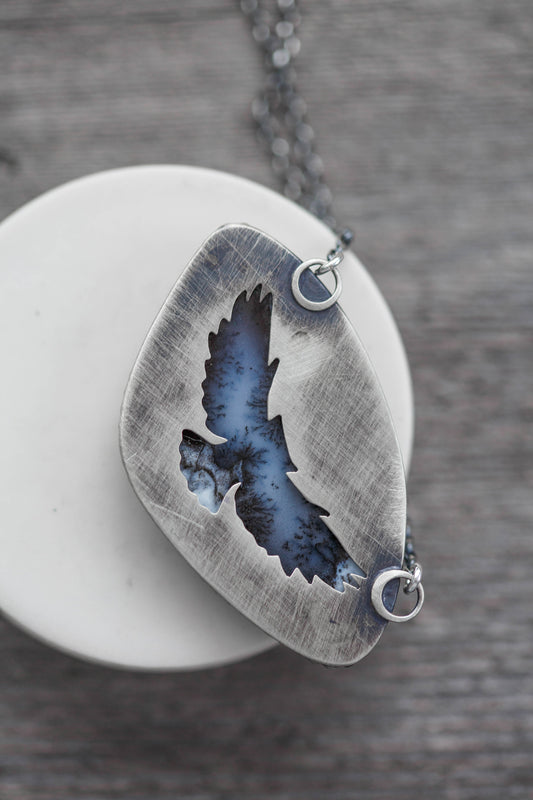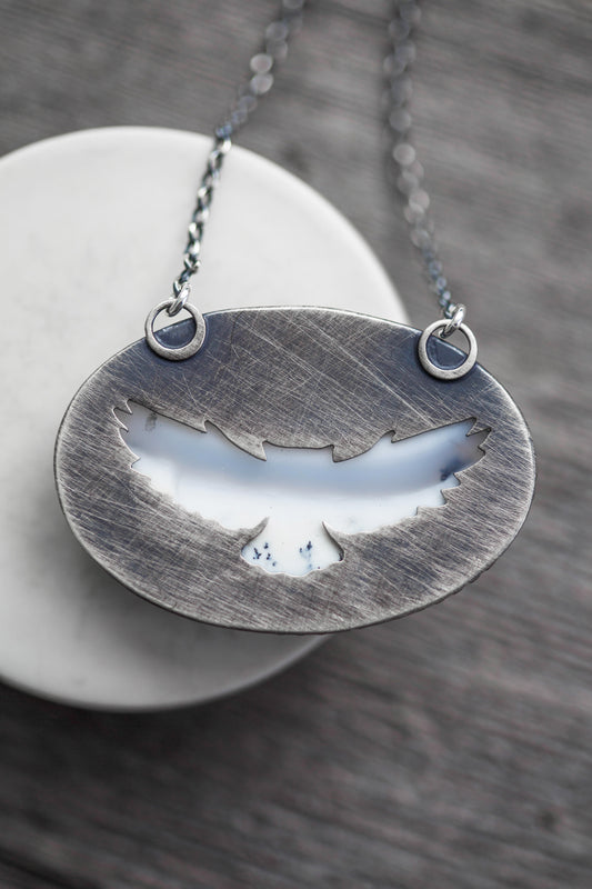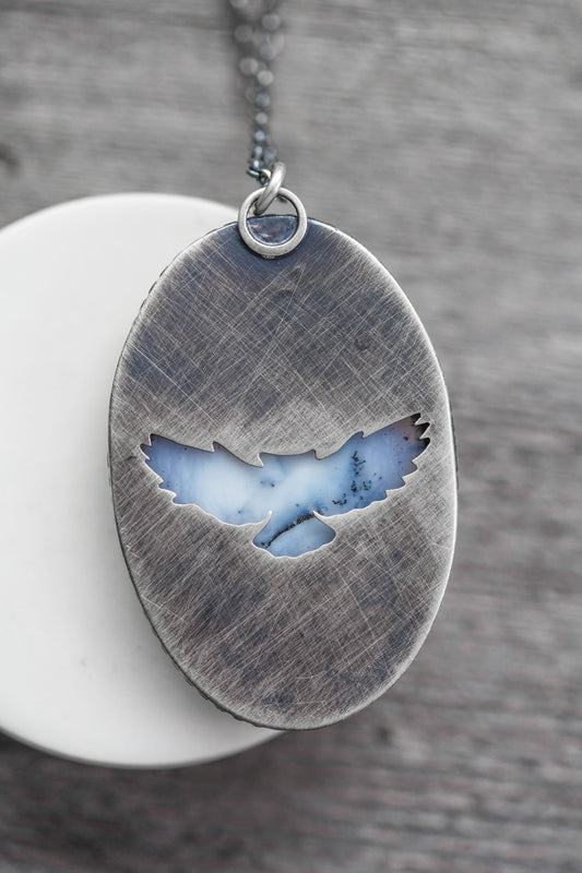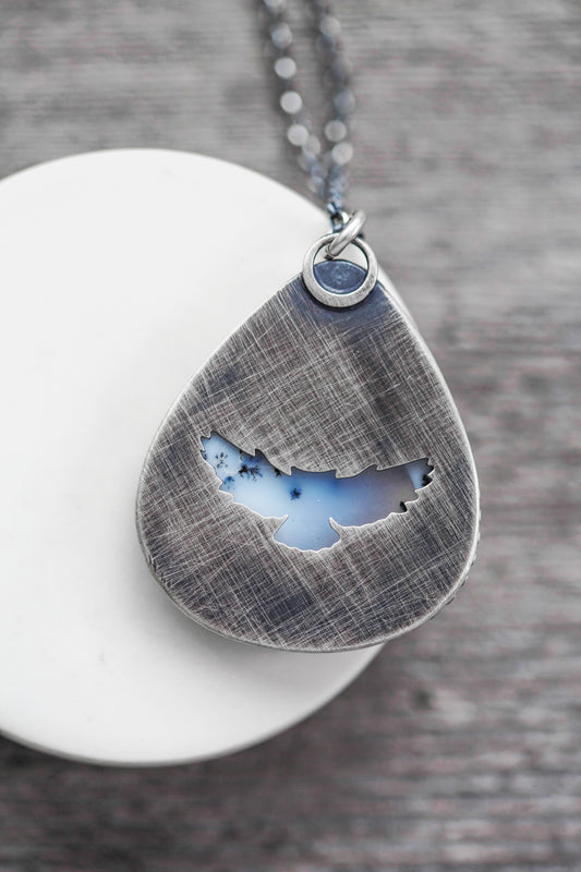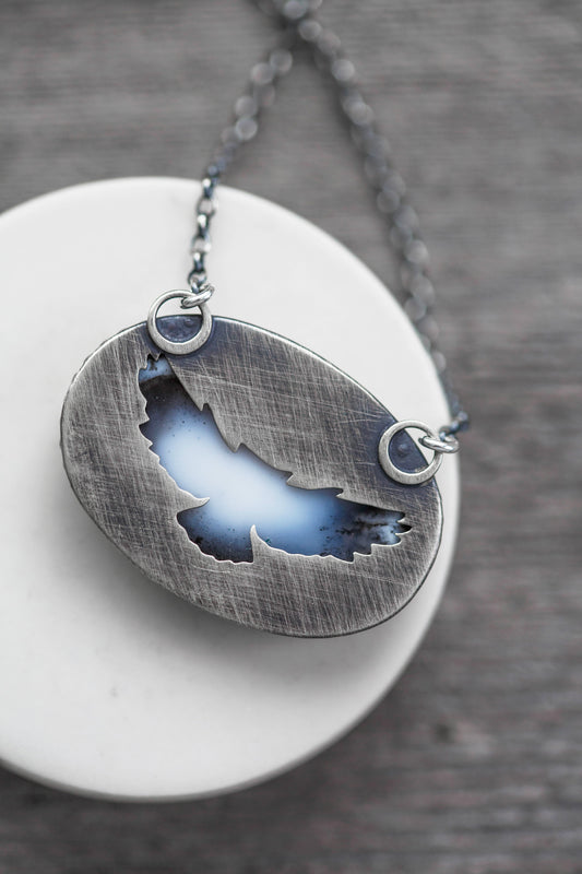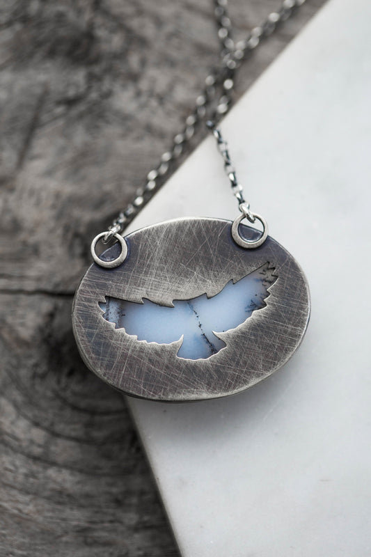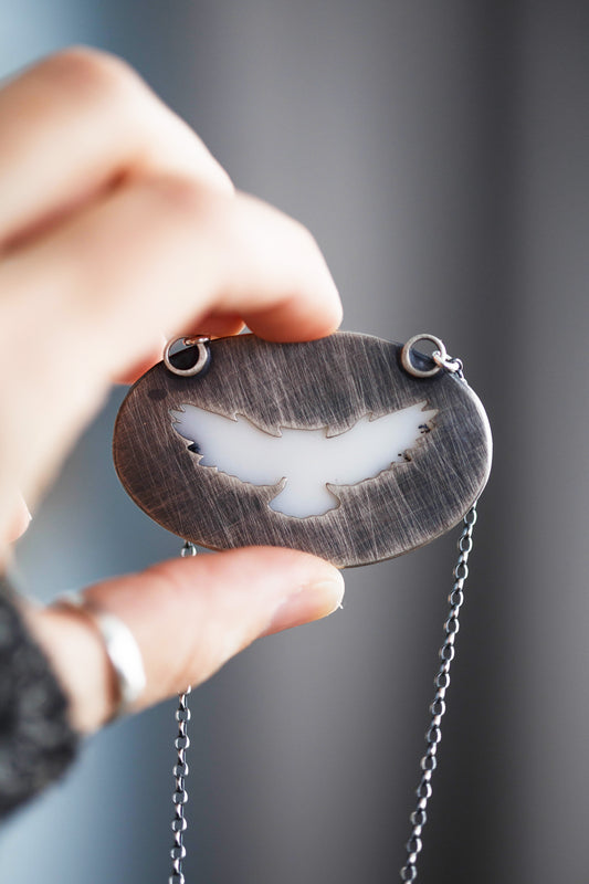 Large Winter Owl Necklace | Hammered Branch Border | #5