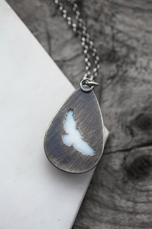 Medium Winter Owl Necklace | Hammered Branch Border | #8