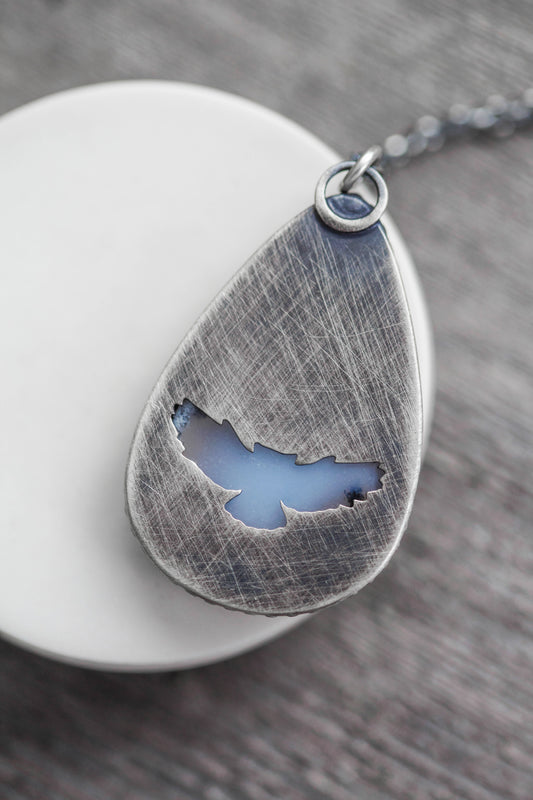 Small Winter Owl Necklace | Hammered Branch Border | #6