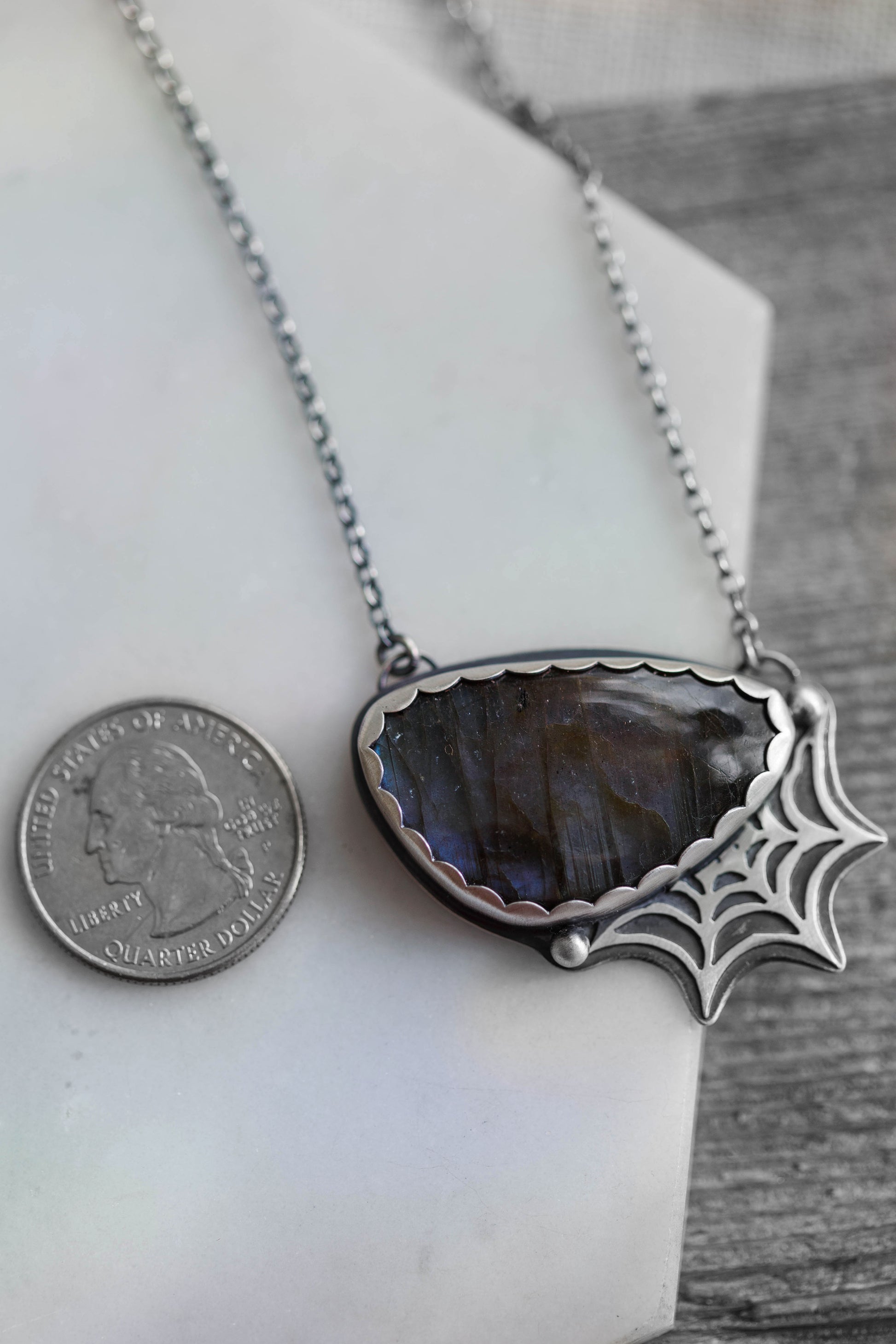 ♥ This piece is part of the Nocturne Collection, an annual collection in time for Halloween. Everything has a dark, witchy aesthetic, sometimes whimsical and sometimes sombre. This time I use labradorite for its otherworldly flash, snakey greens and thundery blues.