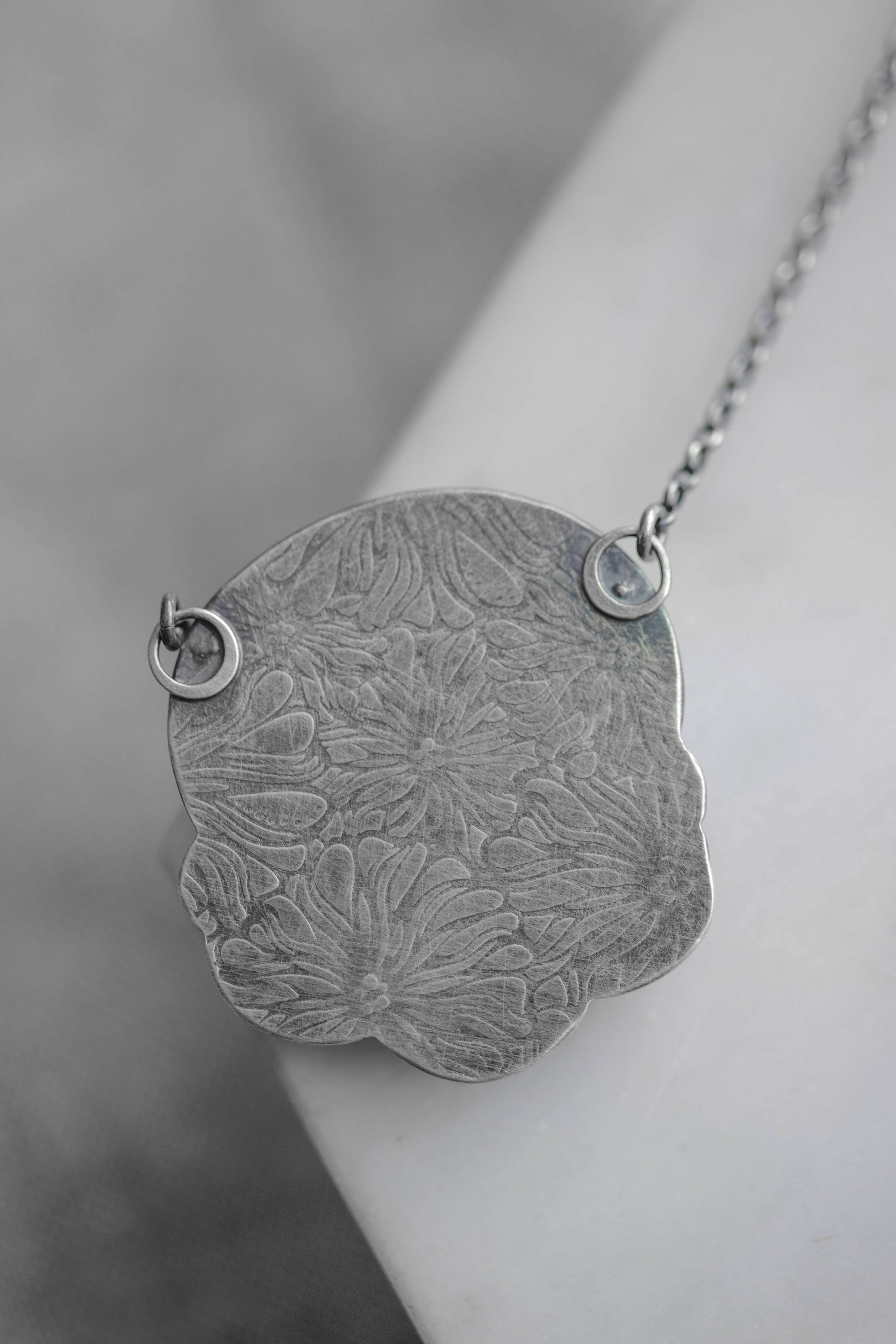 Suspended from a sterling silver chain, adjustable from 17 - 20".