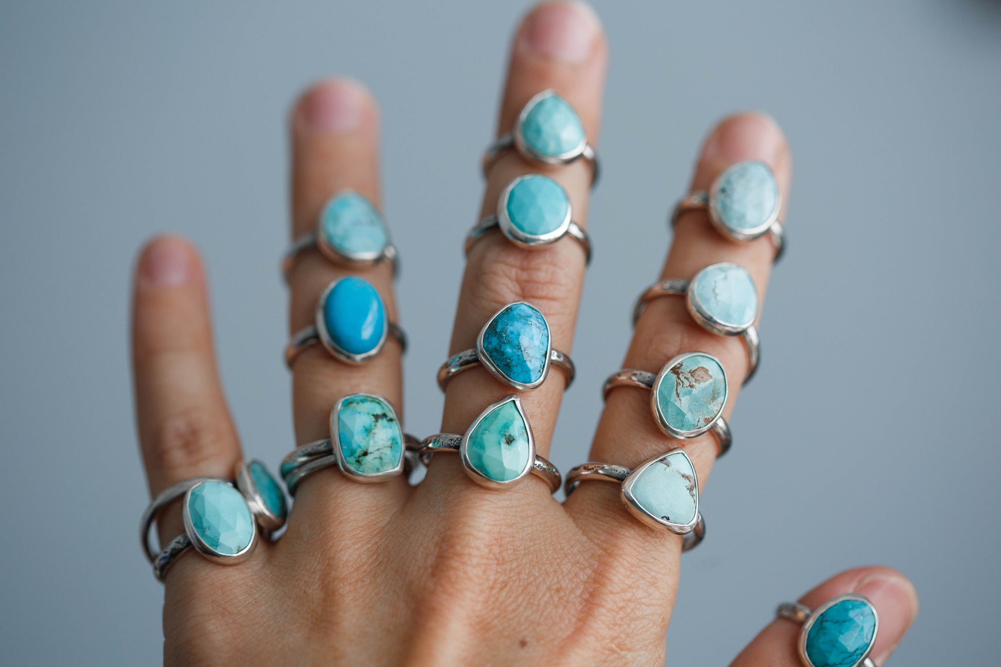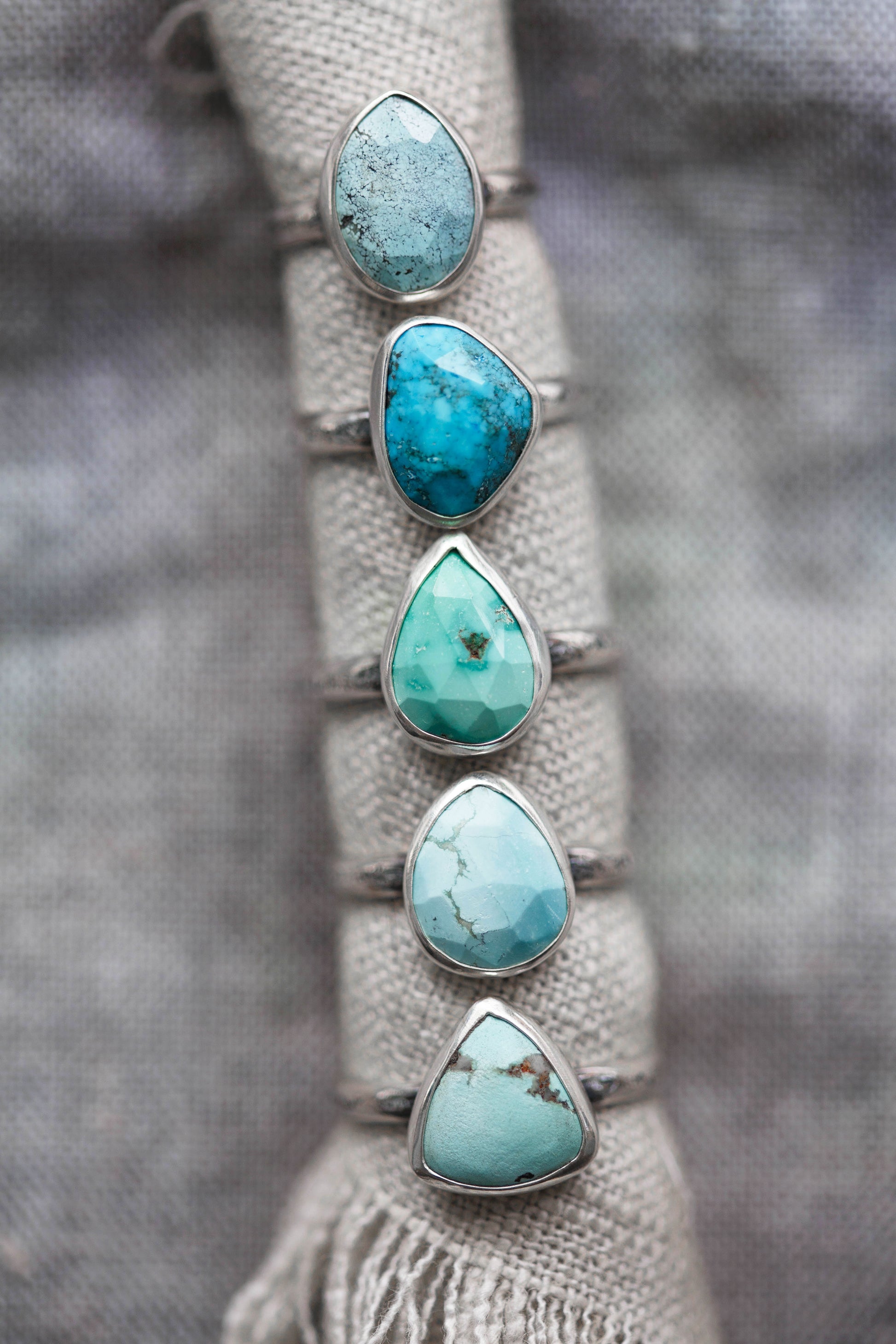 These simple, everyday rings are made some of my very favorite turquoise gemstones from my collection. Some are a soft, smooth blue, others are faceted with fascinating matrices.