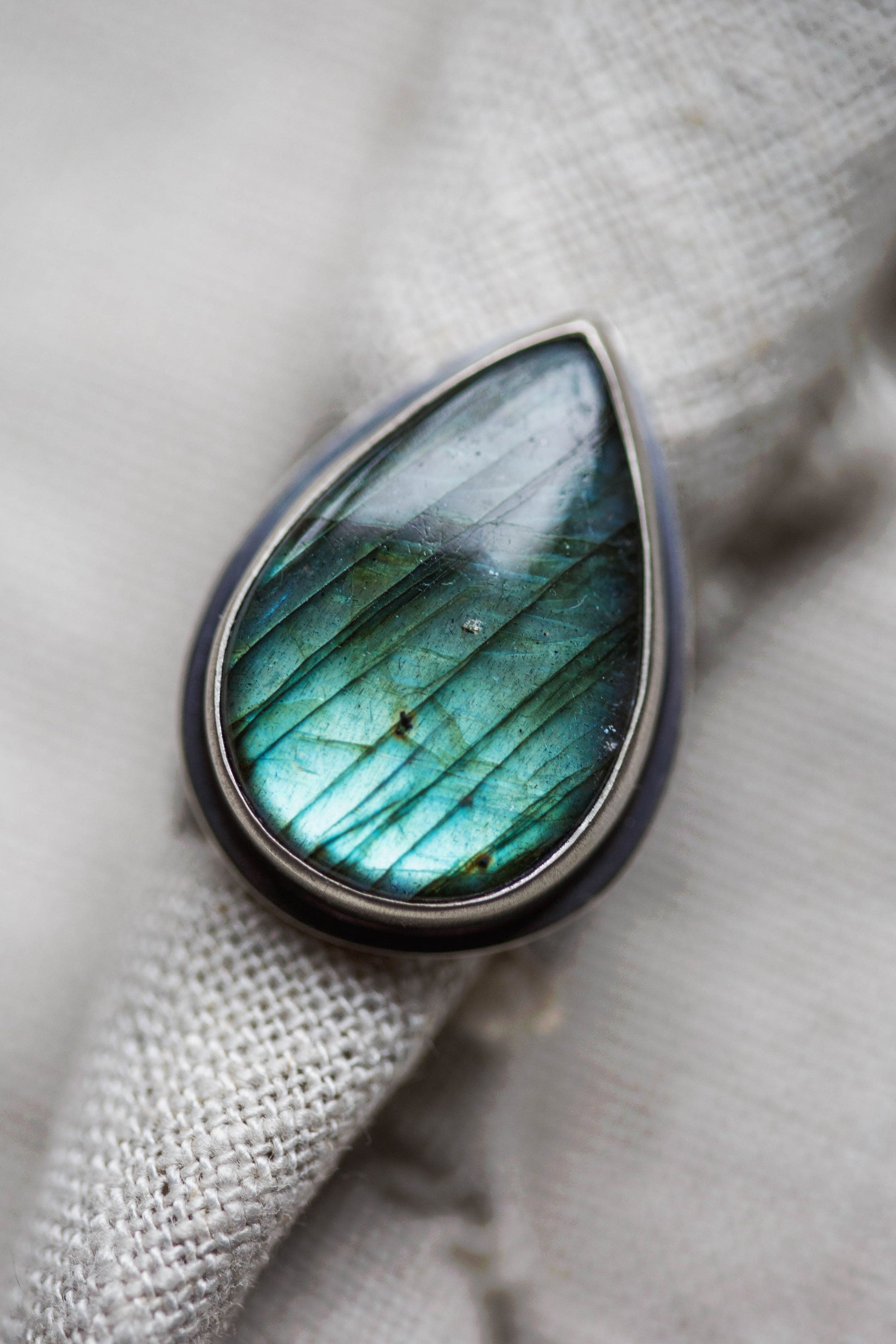 ☀ Labradorite is an iridescent gemstone with a fascinating schiller or metallic luster when viewed from certain angles. The base color of labradorite is a smokey gray, but when light strikes the stone in a particular direction, it displays striking rainbow-colored reflections. Most typically, these metallic tints are violet, blue gold, and green.