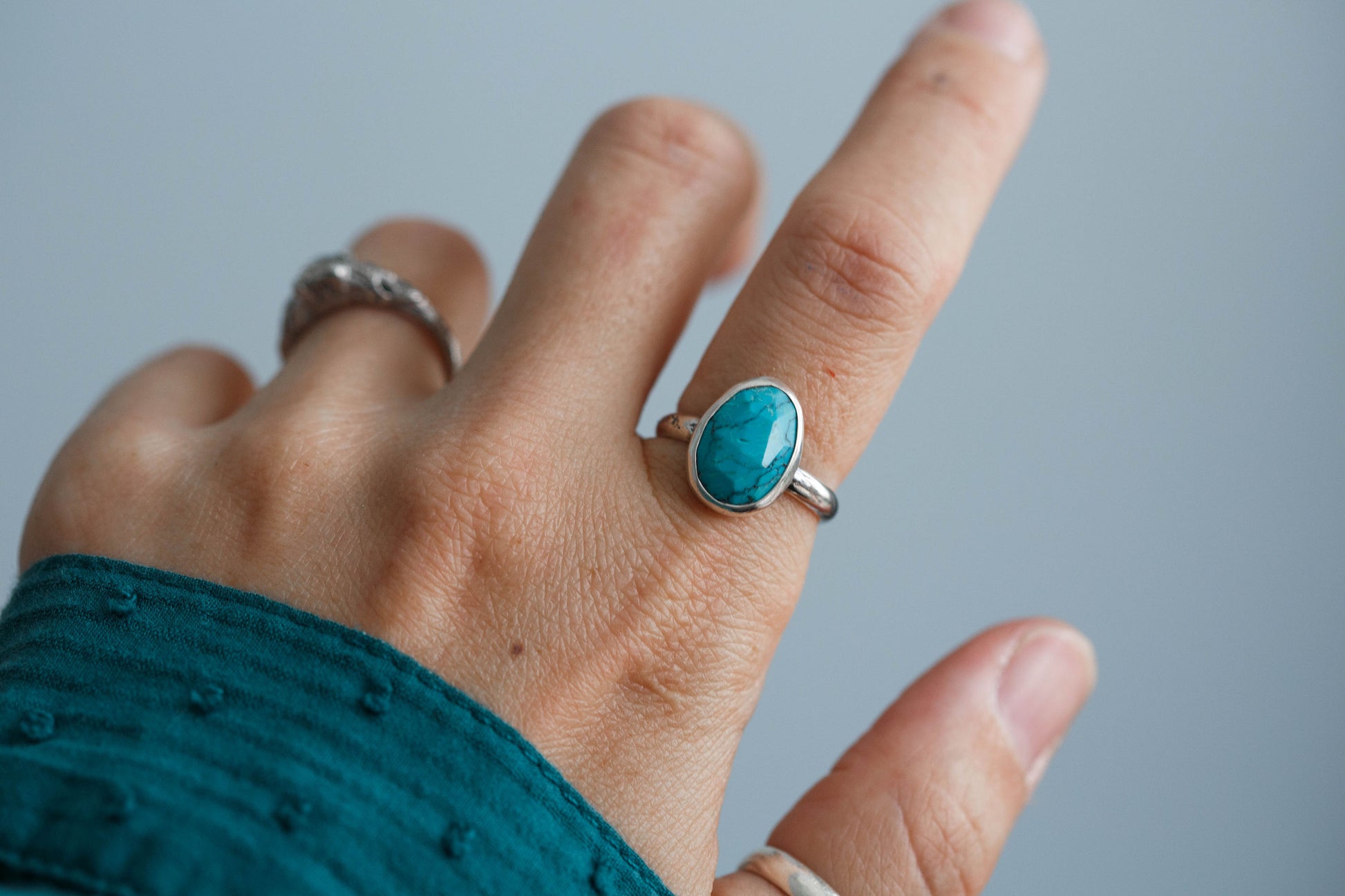 These simple, everyday rings are made some of my very favorite turquoise gemstones from my collection. Some are a soft, smooth blue, others are faceted with fascinating matrices.