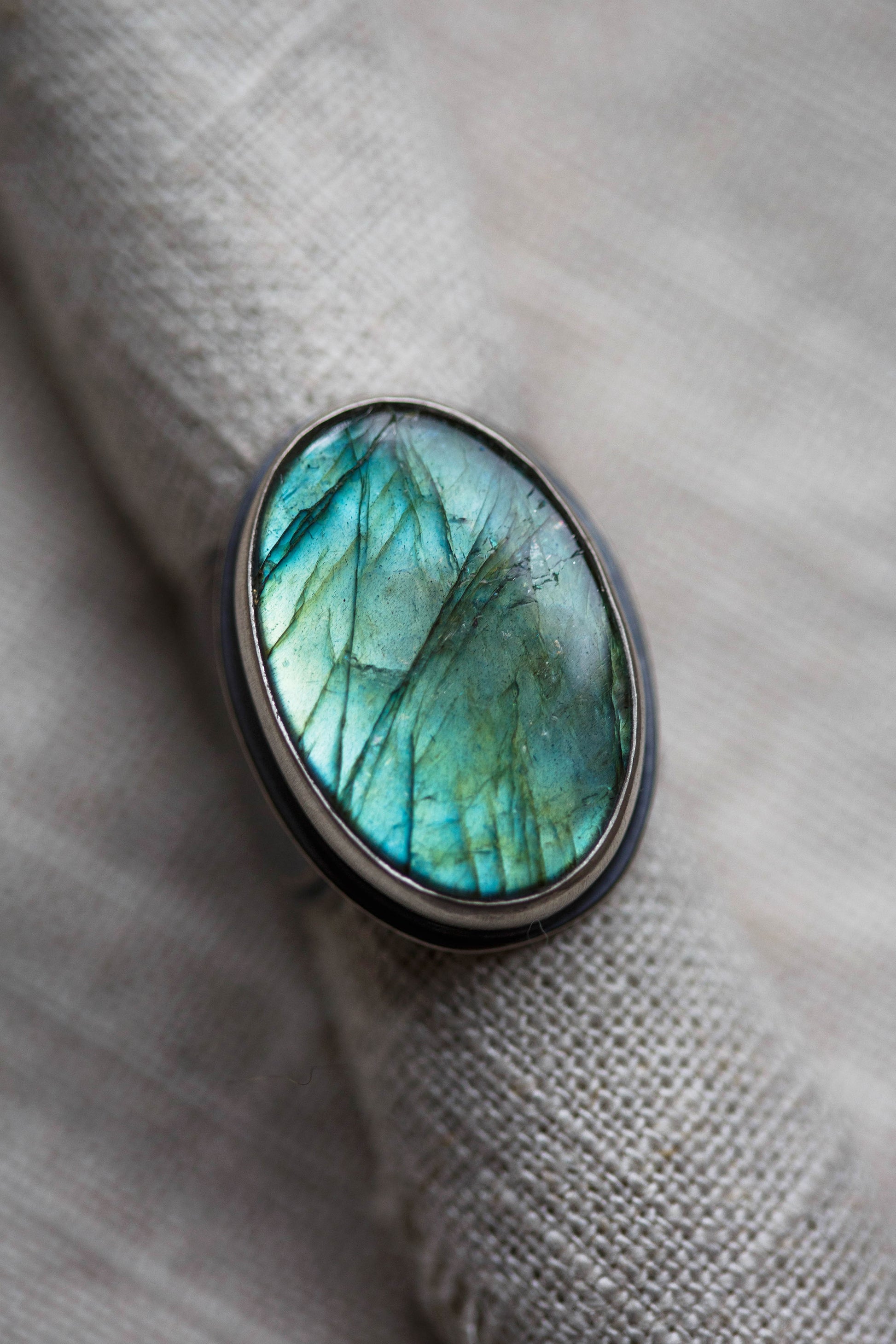 ☀ Labradorite is an iridescent gemstone with a fascinating schiller or metallic luster when viewed from certain angles. The base color of labradorite is a smokey gray, but when light strikes the stone in a particular direction, it displays striking rainbow-colored reflections. Most typically, these metallic tints are violet, blue gold, and green.