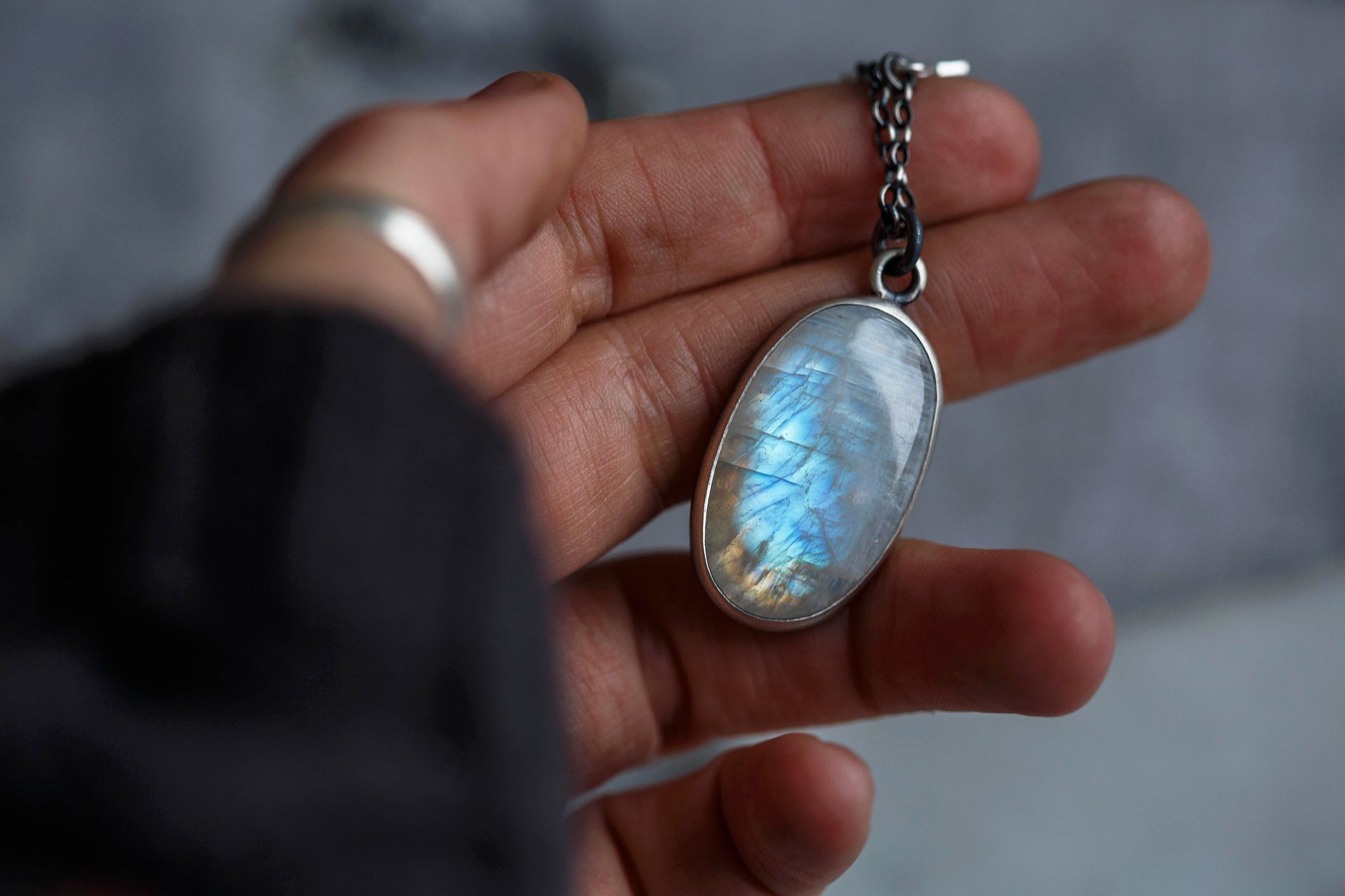But the backs of the pendants have a secret just for the wearer. Small brushed moons are set amidst a sprinkling of fused silver dust.