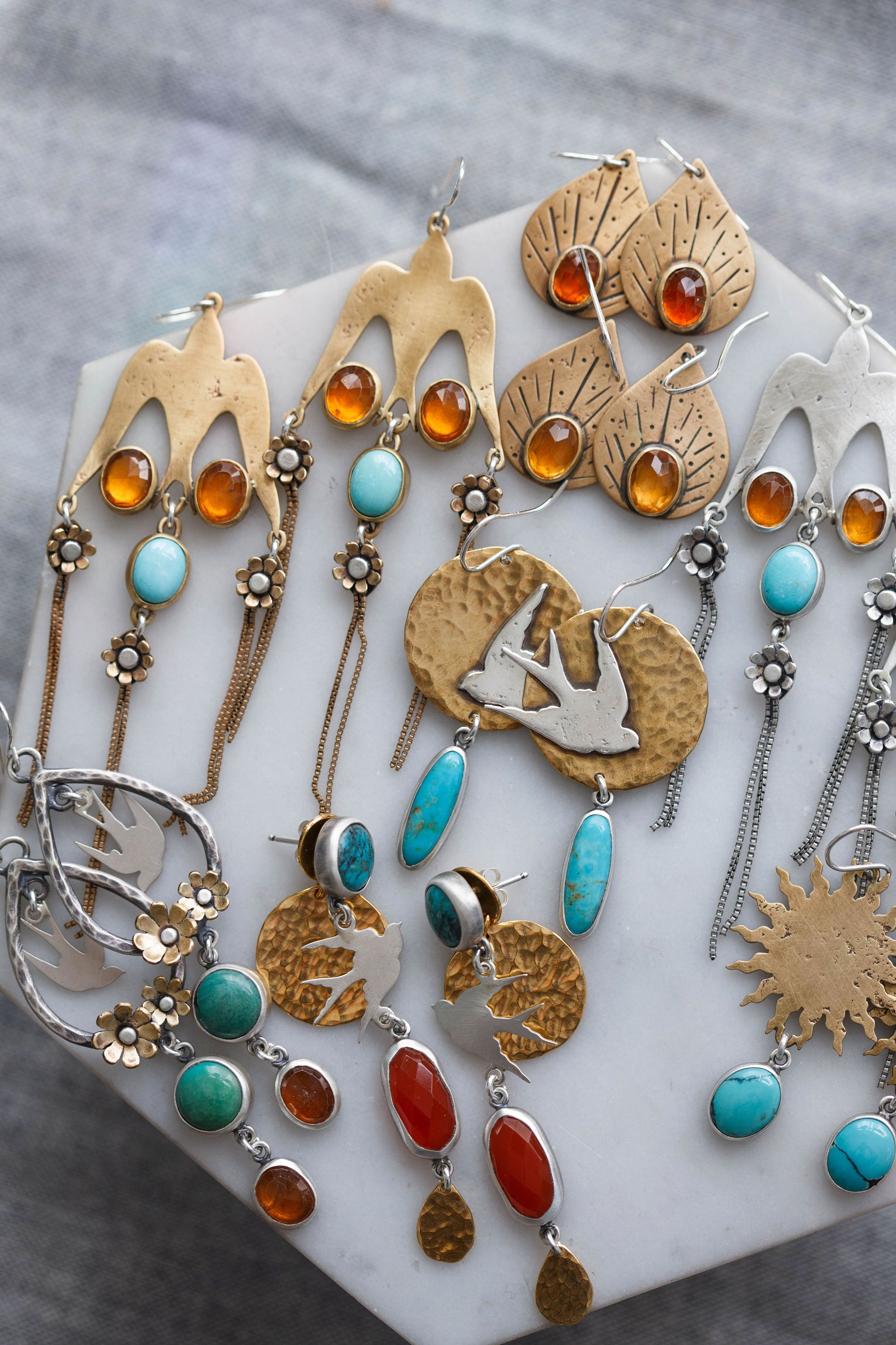 An ode to summer's zenith: earrings made of swallow flight and sun-drenched expanses, worn as a wish to step into the air as burden-less as a swallow.